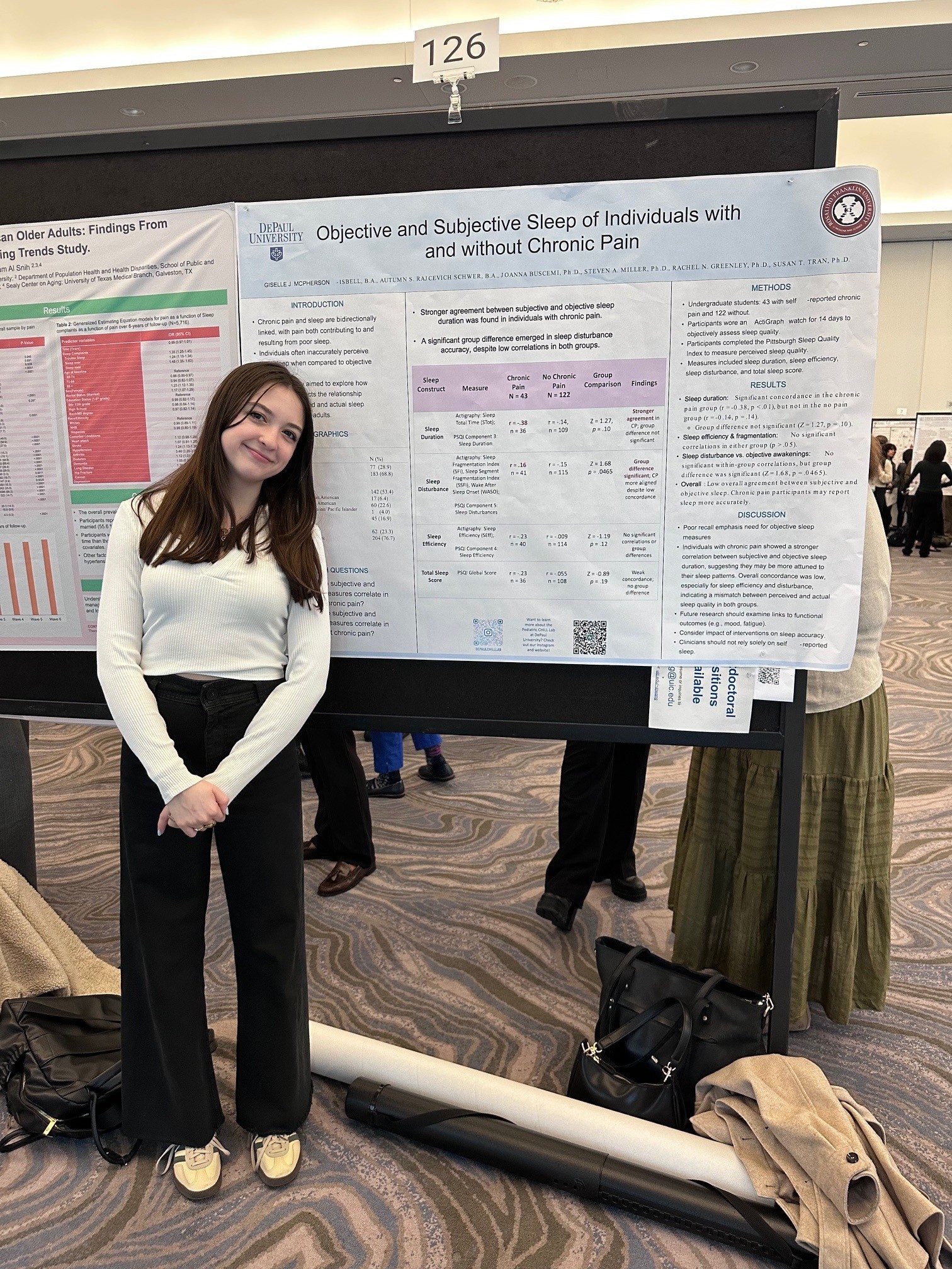 Rajcevich Schwer, A., McPherson-Isbell, G., Miller, S. A., Buscemi, J., Greenley, R. N., & Tran, S. T. (2025, April 29- May 2). Pain and stress influence sleep differently in chronic pain. [Poster presentation]. United States Association for the Study of Pain, Chicago, IL, United States.